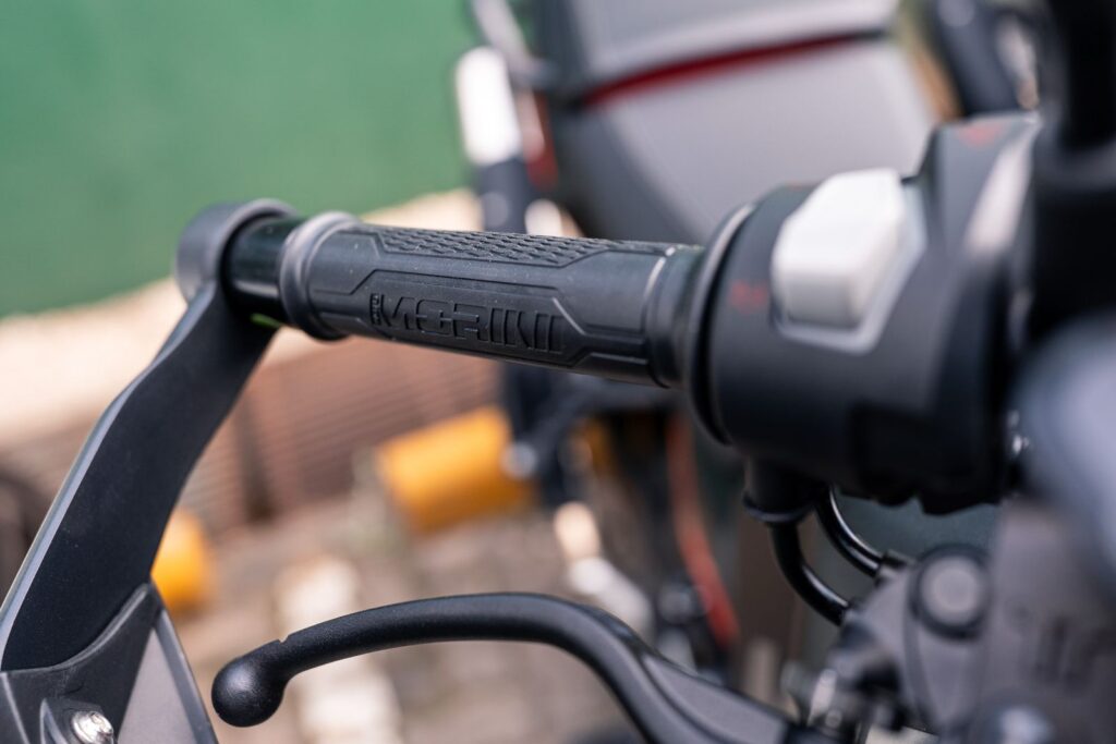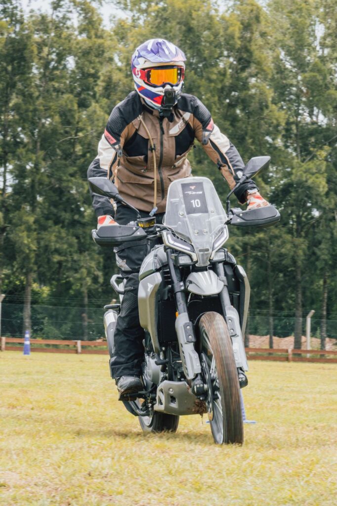¿Lo mejor de la moto? La posición de manejo. Lo debo haber dicho quinientas veces ya en los videos que publicamos en redes hasta ahora, pero de la categoría de las motos adventure sub 500 cc., que hoy es la categoría de motos con más crecimiento y atención a nivel global, la Alltrhike 450 de Moto Morini es la que mejor posición de manejo tiene hasta ahora. Parece una moto grande, de esas que a los pilotos de mayor altura nos quedan más cómodas, con la diferencia que es una moto mucho más liviana y amigable para todo el mundo. Al principio me molestaba un poco el escape en el talón derecho, pero solo e inconscientemente fui corrigiendo la posición del pie y la moto me quedó pintada. Sobre una moto que a priori pensé que ya conocía y que solo tenía otro aspecto visual, me pareció el punto más saliente. Un manillar bien ancho, regulable en tres posiciones, un chasis de dimensiones generosas y una correcta ubicación de los apoyos. Enseguida me sentí como si fuera mi moto de siempre, manejándola con las piernas.