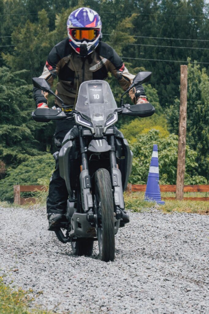 El segundo día de pruebas con la Moto Morini Alltrhike iba a ser revelador, porque la moto tenía algunas sorpresas preparadas bajo la manga. La primera novedad con la que me encontré fue que la desconexión del ABS es total, no solo en la rueda trasera sino en las dos, algo de lo que hay que estar advertido pero que también nos deja sentir el tacto del freno cuando estamos manejando en el terreno suelto, y acostumbrarnos a frenar como hay que frenar, de manera progresiva, cargando la suspensión y aprovechando el grip de la rueda delantera acompañando también con el freno trasero para acomodar la moto. Para el principiante puede transmitirle un poco menos de confianza, pero cuando empezas a frenar como se debe, la sensación del tacto del freno delantero es clave, y en ese sentido la Alltrhike está muy bien.