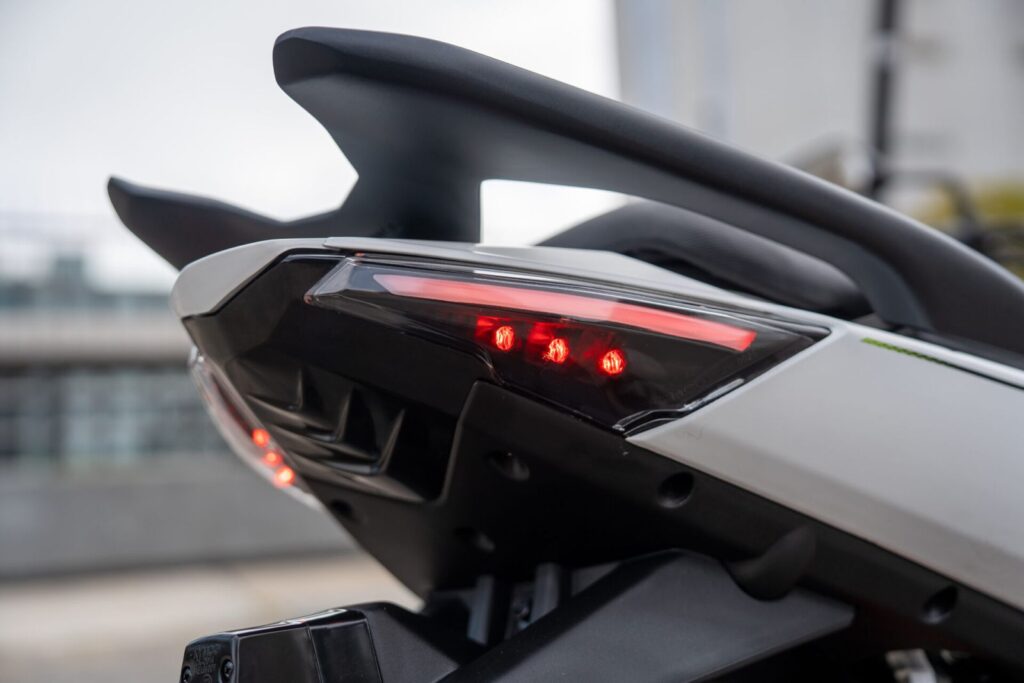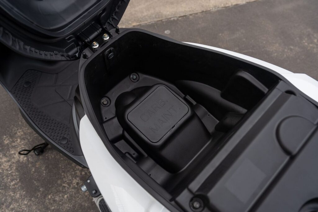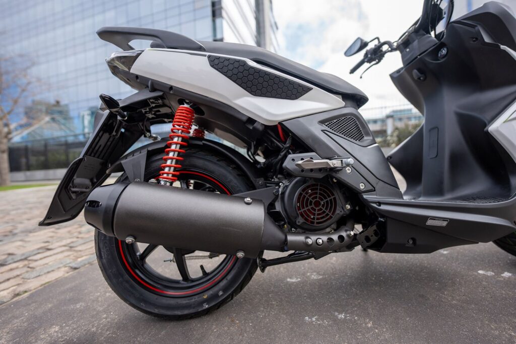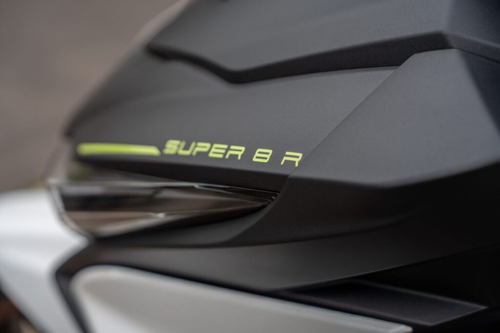Otras características del Super 8 que hacen al confort y la practicudad son el asiento biplaza con respaldo abatible, espacio de guardado interior con llave, ganchos para equipaje, portaobjetos trasero, soportes para casco y estribos para el acompañante. El peso en orden de marcha de este nuevo scooter de Kymco es de 121 kilos con un tanque de combustible de 6 litros.