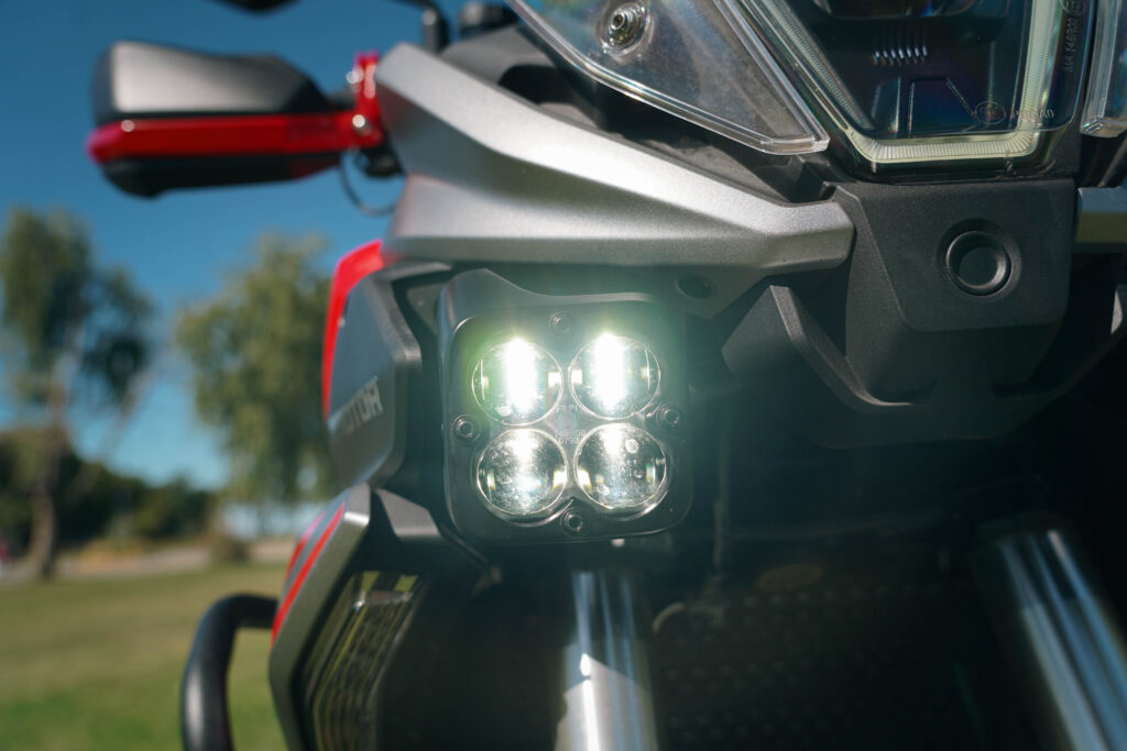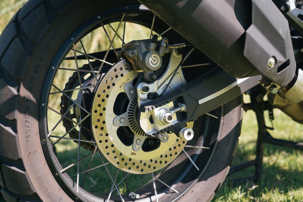 La parte ciclística está conformada por marcas de renombre. Frenos Brembo que no desentonarían en una moto de altas prestaciones de la década pasada. Calipers de 4 pistones con discos de 320 mm aseguran una frenada contundente, aunque no la más comunicativa, y las suspensiones Marzocchi terminan de endulzar la ecuación y, además, suman regulación de compresión y rebote adelante y precarga, de manera remota, y rebote atrás.