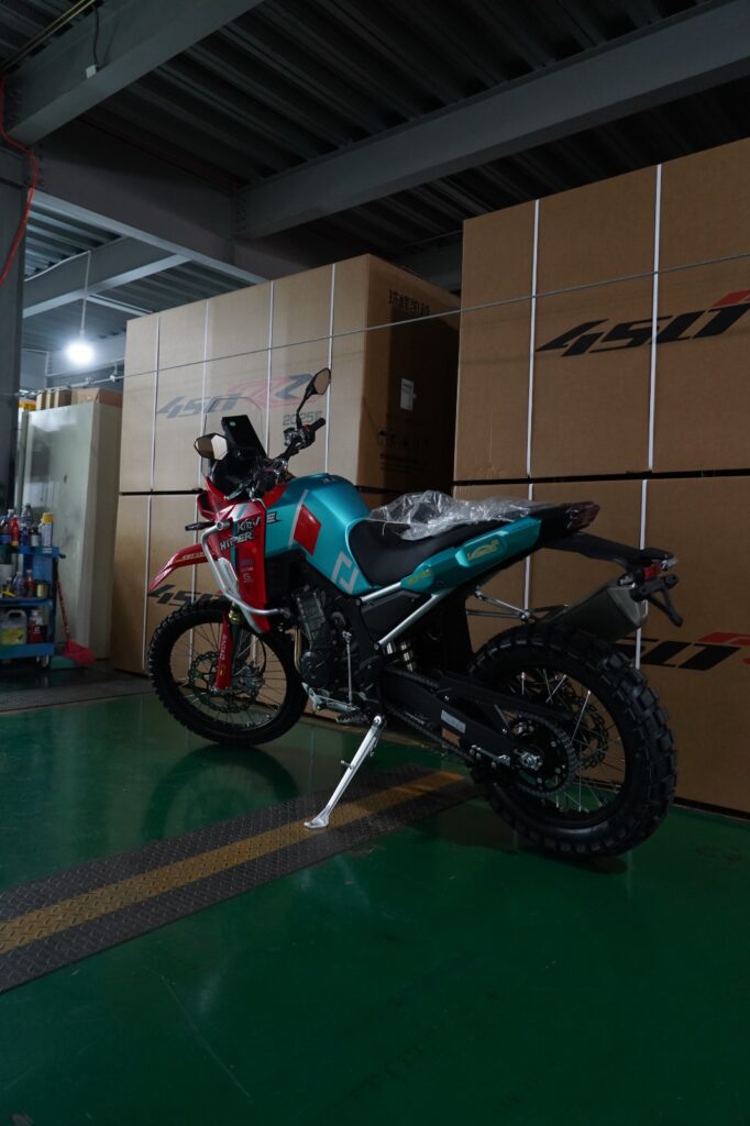 Tiempo después tuvimos un mini-contacto con la moto en España, en ocasión de nuestro viaje a Barcelona para probar las nuevas GRR 450 de Royal Enfield. Pero fue tan breve como irrelevante, ya que una vueltita por el Passeig de Gràcia de noche no nos dejó mucha información. Finalmente sobre el final de 2024 Magny S.A., su representante en Argentina, confirmó la llegada de la marca en un evento-cocktail de fin de año en la costanera, junto con otros modelos de esta marca creada por el genio de Zhang Xue, un ex piloto y una especie de científico loco que puso su energía en desarrollar productos de alta performance para un uso deportivo.